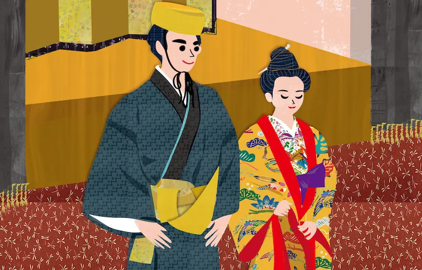 琉装は晴れ着として親しまれてきた琉球の正装です。ドラマの中では、暢子の華やかな琉装姿が印象的でした。紅型(びんがた)の鮮やかな色彩に目を惹かれた方も多いのではないでしょうか。紅型は琉球王国時代に発展した染物の総称で、「紅」には色彩、「型」には模様という意味が含まれています。交易が盛んだったアジア各国の大胆な配色と日本の繊細な模様が融合した琉球独自の伝統工芸です。 琉装の長い袖や緩やかなフォルムは、中国の漢服や日本の着物の影響を受けて発展したものです。着物と違い、帯留めはせず、袖口が広くゆったりとした造りになっているため、風通しがよく、沖縄の風土に合っています。今でも、成人式や十三祝い、結婚式などで琉装を選ぶ若者は少なくありません。華やかにハレの日を祝う、時代を越えて愛される衣装です。