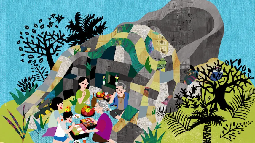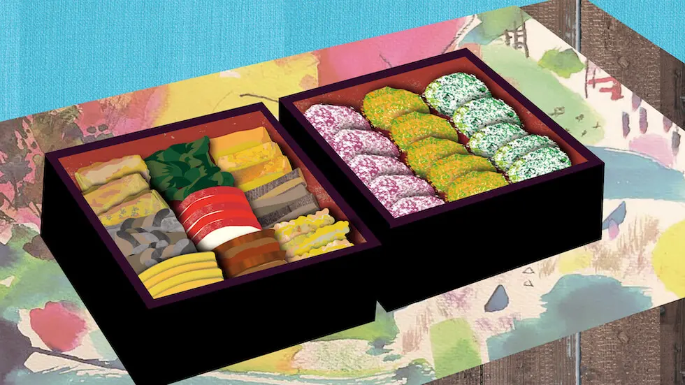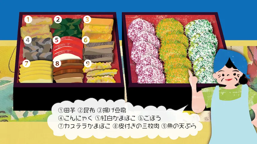 沖縄には先祖を大切にする風習があり、今でも旧盆や清明祭(しーみー)、お彼岸といった行事が盛大に行われています。御三味(うさんみ)とは、先祖の墓や仏壇にお供えする重箱料理のこと。重箱の中には、「天・地・海」の食材を使った惣菜が詰まっています。基本となるのは、カステラかまぼこ、紅白かまぼこ、揚げ豆腐、魚の天ぷら、田芋、昆布、ごぼう、こんにゃく、三枚肉の9品。行事前になるとスーパーの惣菜売り場にも並びますが、手作りにこだわる家庭もあります。ドラマの中では、良子が石川家の嫁として認めてもらえるよう頑張っている姿が印象的に描かれていました。