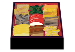 御三味には、惣菜を詰めた「おかず重」の他に、餅を詰めた「餅重(むちじゅう)」があります。法事の餅重には白餅を入れますが、清明祭や正月ではきなこ餅やよもぎ餅を入れることもあります。餅の数は9個か15個が基本ですが、「お祝いは奇数、法事は偶数」と決めている地域や家庭もあるとか。御三味の供え方は、おかず重と餅重を1セットとして、一組は仏前に、もう一組は手前に並べます。この形には、ご先祖様と一緒に同じごちそうを食べて供養するという意味があるそうです。先祖への想いが強い沖縄ならではの風習ですね。