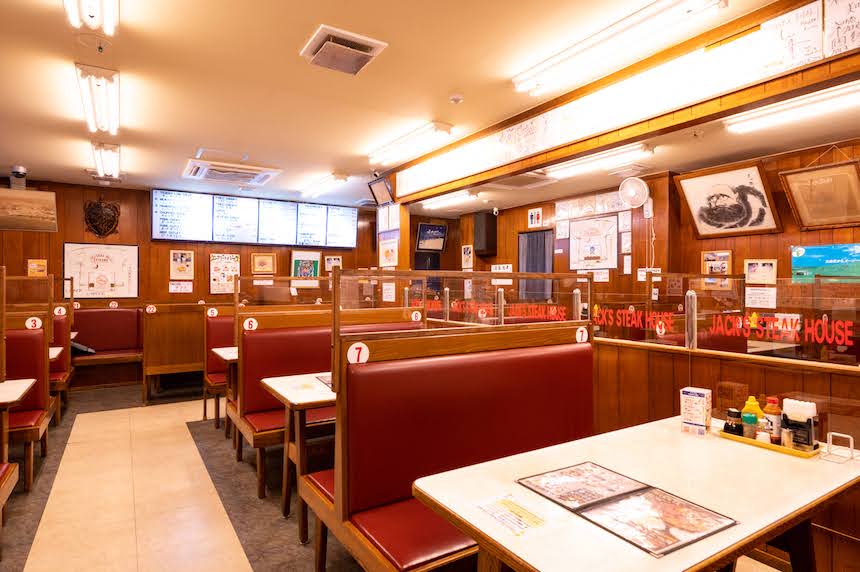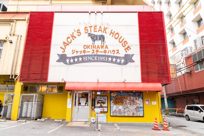 その後那覇へ移転し、建物の老朽化のため2001年に現在の場所へ移転しました。アメリカ世の時代から続く老舗のステーキハウスとして、県民からも旅行者からも「ジャッキー」の愛称で親しまれています。