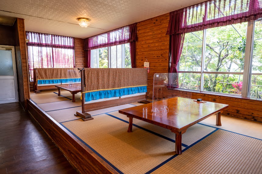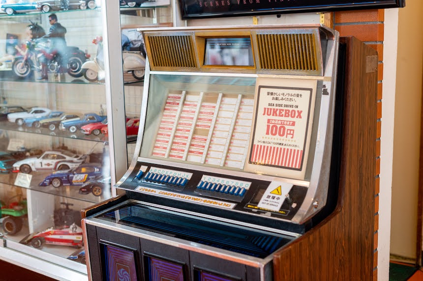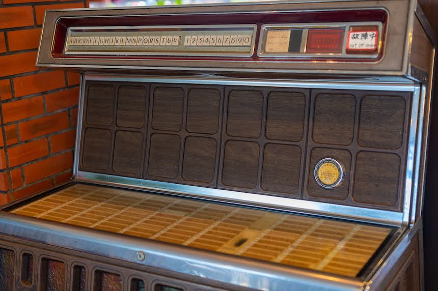 ハワイアンミュージックの流れる店内は、椅子席だけではなく沖縄の昔からある街の食堂にあるような畳敷きの小上がりもあり、レトロで落ち着く雰囲気。小さいお子さん連れにも安心ですね。いまは動きませんが、定番のジュークボックスもしっかりあります。