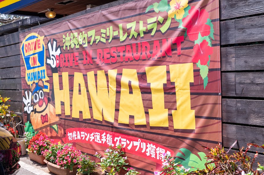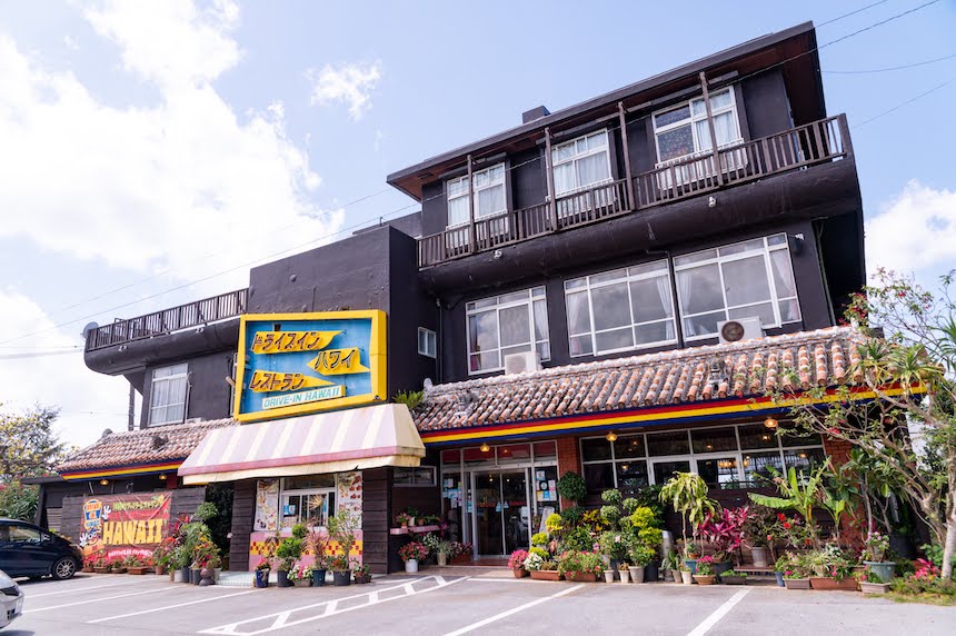 本島北部、国道449号を通って東シナ海を左手に見ながら美ら海水族館に向かう途中、2023年に創業50周年を迎える老舗のレストラン「ドライブインレストラン ハワイ」があります。
