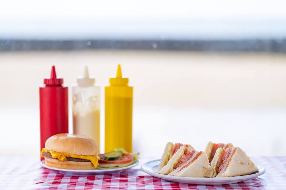 気軽に食べられるサンドウィッチやバーガーも人気。お店の名前がついた「シーサイドサンド」はいわゆるクラブハウスサンドで定番メニュー。エッグバーガーは店内で食べるときは、水分でベチャッとならないよう野菜が別立てで出て来るという心遣いが嬉しいですね。