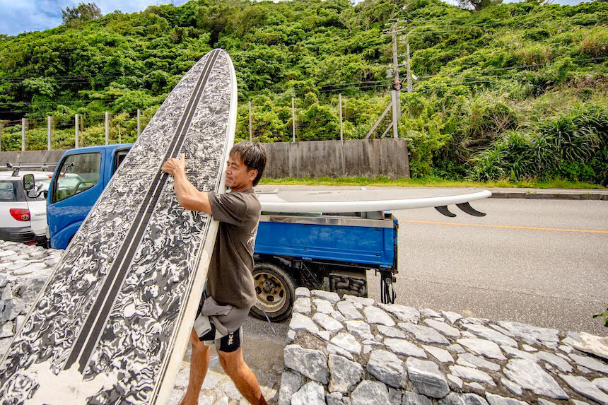 国頭村出身で村内のホテルに勤めながら、プロウェイクボーダーとして全国大会2位になるなど活躍した大田さんはこう話します。地元の海を愛するがゆえに、12年ほど前に「オクマナビ」を開業。新型コロナの影響を除けば、県外、県内ともに利用者は増えていて、リピーターも多いといいます。