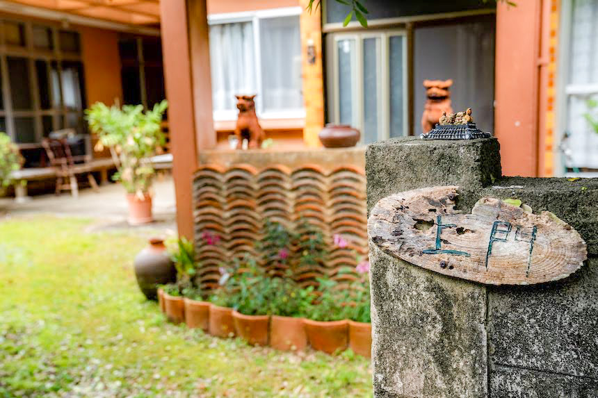 一軒の家の前で表札を見ると、屋号が示されていました。「与那に最初に住み始めた人の子孫の方の家で、集落発祥の屋敷です」と大城さん。沖縄では古い集落に行くと、名字とは別に、家に屋号がついていることがよくあります。昔は集落内での分家も多く、名字だけではまぎらわしかったため、屋号で呼び分けるという習慣が今でも残っているのです。与那ではこうした伝統を子どもたちに教えようと、集落の家々に名字の表札とは別に、屋号を書いた表札を子どもたちに作ってもらい掲げているとのことです。
