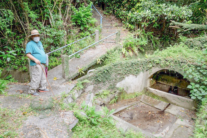 集落内には五つのカー(井泉)があり、水道が引かれる以前はそこで洗濯や洗い物をしていました。昔、その一カ所には共同の五右衛門風呂があり、地域の人たちが利用して憩いの場となっていたそうです。