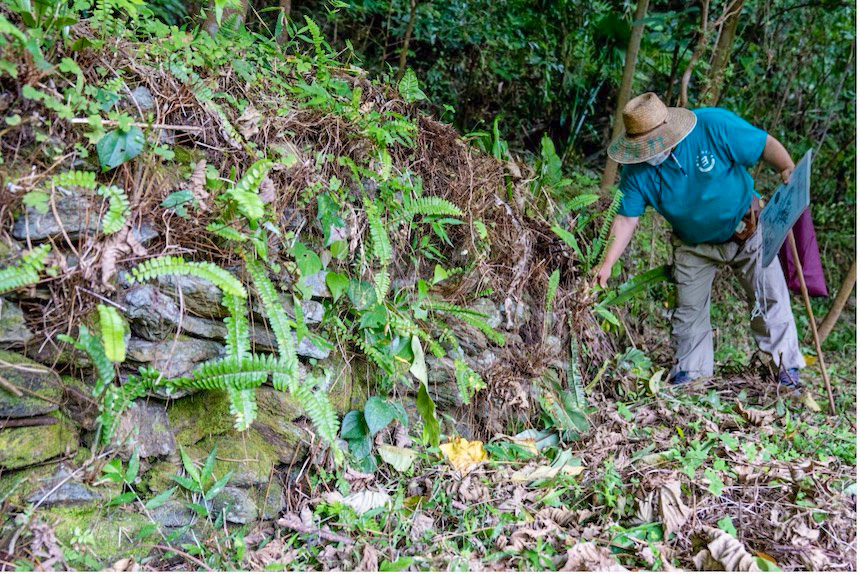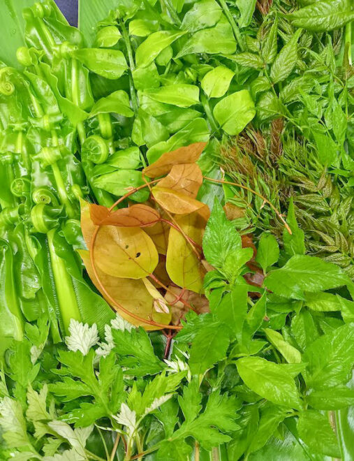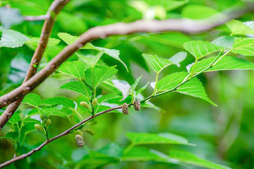 辺りに自生している「オオタニワタリ」の葉の新芽は、天ぷらにしても、炒めても、生でもおいしいそうです。さらに、「アカメガシワ」や「カラキ(シナモンの一種)」、「クワ」の木なども見られました。
