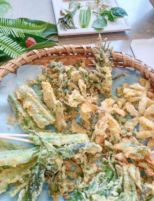 葉や実は料理に使えます。国頭村ではハチミツも採れ、与那ではそれらを「カラキ」と共にパウンドケーキなどデザートの食材として使っているそう。また、「よんな~館」では5人~10人程度の予約で、与那で採れた山菜や野草を中心としたランチも提供しているとのこと。