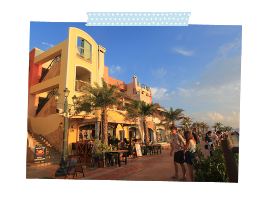 外国人が多く住む北谷町の海沿いにある美浜アメリカンビレッジは、多くの飲食店やアパレルショップ、アミューズメント施設が一堂に集まった人気のリゾートエリア。英語表記のお店が軒を連ねるこの一帯は、異国情緒たっぷりでまるで海外を旅しているような気分も味わえる。美しい夕日が見られるサンセットビーチもあり、オーシャンビューのレストランやカフェもたくさん。地元の人たちも多く集まる人気スポットなのでぜひ立ち寄ってみて。