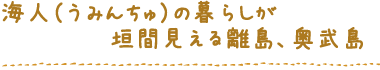 魚、イカ、モズク、イモなどを具材にした天ぷらを片手に海を眺めるのが、この島の楽しみ方だ。島の住民の多くは海人(漁師)で、旧暦の5月4日に開催される奥武島ハーリーは、大いに白熱し盛り上がる。ハーリーとは、漁や航海の無事を祈願するための祭りで、爬竜船(はりゅうせん)と呼ばれる船を使った競漕のこと。