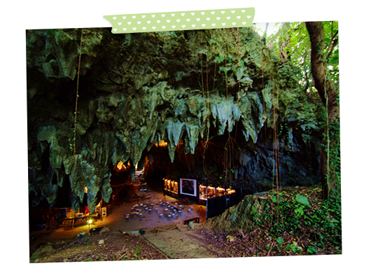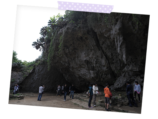 数十万年前の鍾乳洞が崩壊してできた谷間に川や森が広がるガンガラーの谷。“ガンガラー”とは、昔の人が谷底に投げた石が響く音のこと。この地からは化石や石器が多数発見されており、近くには日本人のルーツに関わる港川人の人骨化石が見つかった遺跡もある。奇岩や巨大な鍾乳石、高さ約20mを誇る大主ガジュマルも見ものだ。
