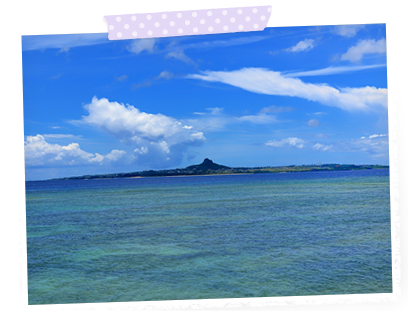 本島北部の本部半島から北西約9kmの洋上に浮かぶ伊江島は、本部港からフェリーで約30分と、アクセスしやすい離島。