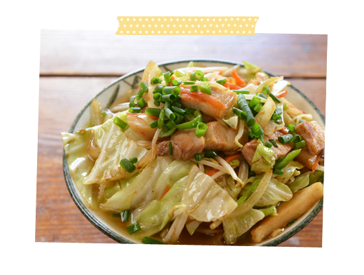 昔ながらの佇まいを残すこの店では、沖縄そばをはじめ、ゴーヤチャンプルーやタコライスなど沖縄の定番料理がリーズナブルな価格で楽しめる。中でもおすすめは、地元の食材を使ったボリューム満点の野菜そば。木の温もり溢れる店内からは散策中の水牛車をみられることもあり、風情たっぷり。