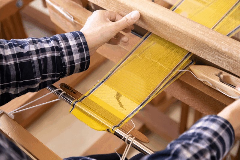 およそ600年の歴史を持つ読谷山花織は、織り地に先染めされた糸で花のような幾何学模様の文様を織り込んでいることが特徴。読谷山ミンサーは「グーシ花織(はなおり)」と呼ばれ、竹ぐしで浮かしたい模様の部分の経糸(たていと)を拾いながら紋を作ります。 体験では、読谷ミンサーの「グーシ花技法」という技法を用いて、実際に職人が使う織り機でコースターを織ることができます。糸を浮かせて文様を織りだす花織の美しい作品に触れてみてください。