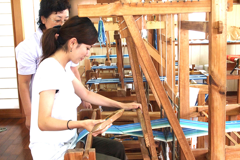 沖縄の染織物に触れる