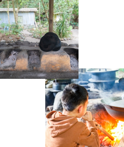 地元小学生の総合学習で「食」をテーマにして自然体験学習の場として「じんぶん学校」に訪れてくれるようになり、保護者の方々にもサポートしてもらいながら食を通して地域の豊かさを感じてもらうプログラムを実施しています。