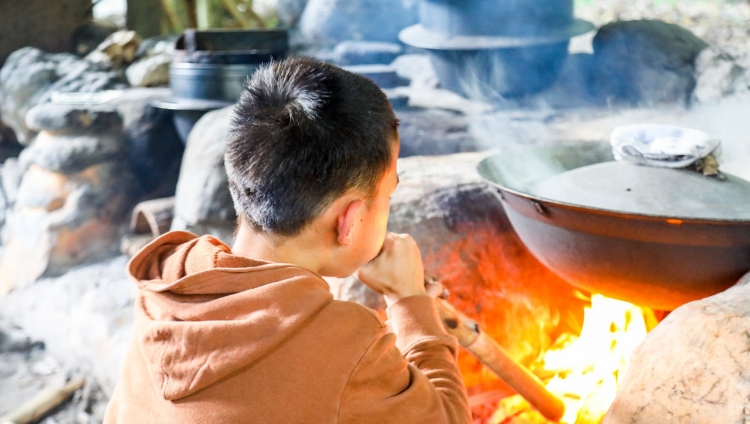 「じんぶん学校」での暮らしは電気・ガス・水道は無く、自らの手で火を起こして灯りと暖を取り、高低差を利用して川から水を引きます。空腹になれば買い物へ行くのではなく、自然から食料を頂きます。