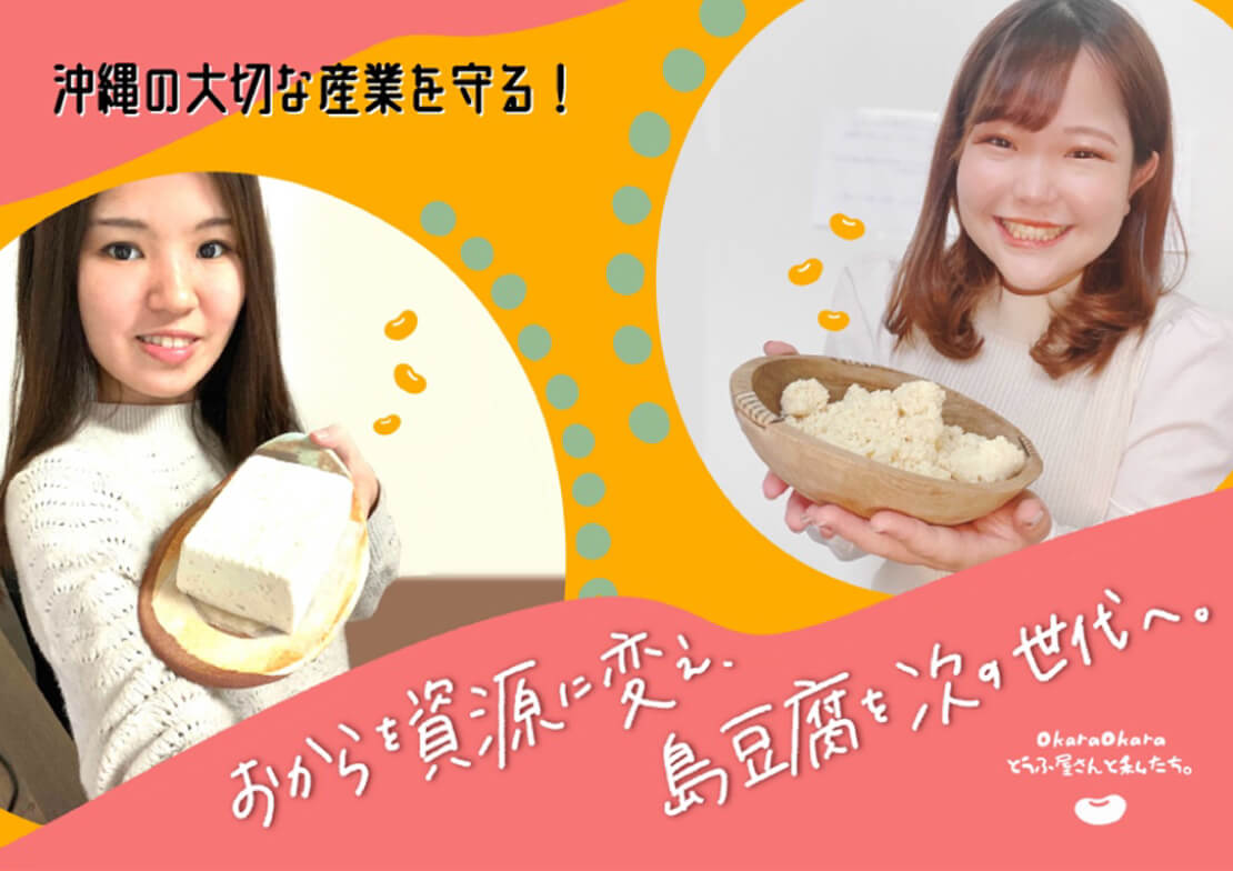 沖縄の産業を守り持続可能な社会を創るという強い志を持つ、学生起業家のふたりが立ち上げたOkaraokaraは、本来食べられるものなのに、あまり有効活用されてなかった「おから」を再利用し、価値ある商品やサービスに昇華させることで沖縄のフードロス削減に貢献しています。