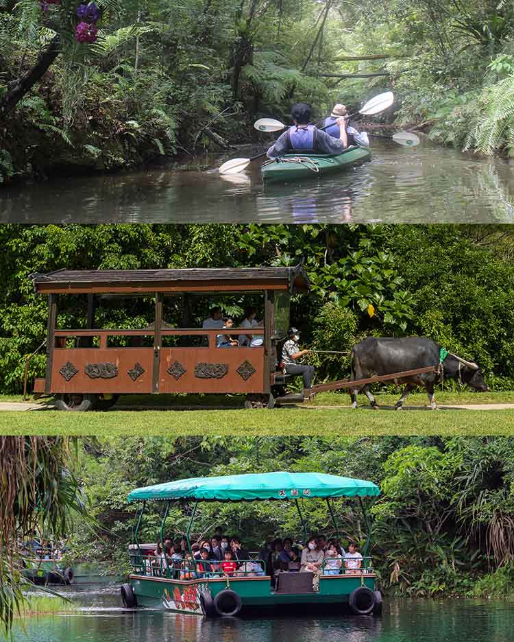 空から見ると、園の中心には龍の形をした大きな池があり、湖水観賞舟や平舟 (SUP)、カヌーなどのアクティビティが楽しめます。子どもも大人も、興味津々で耳を傾けながら亜熱帯の風景を楽しんでいます。