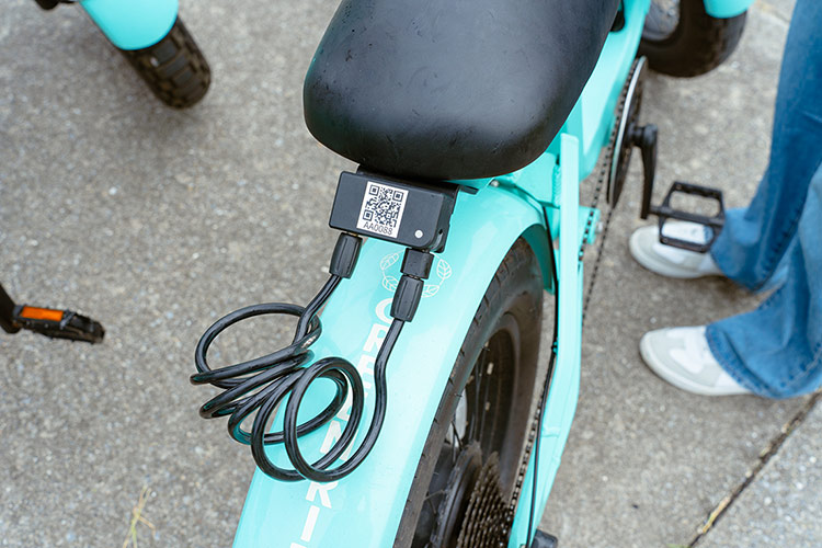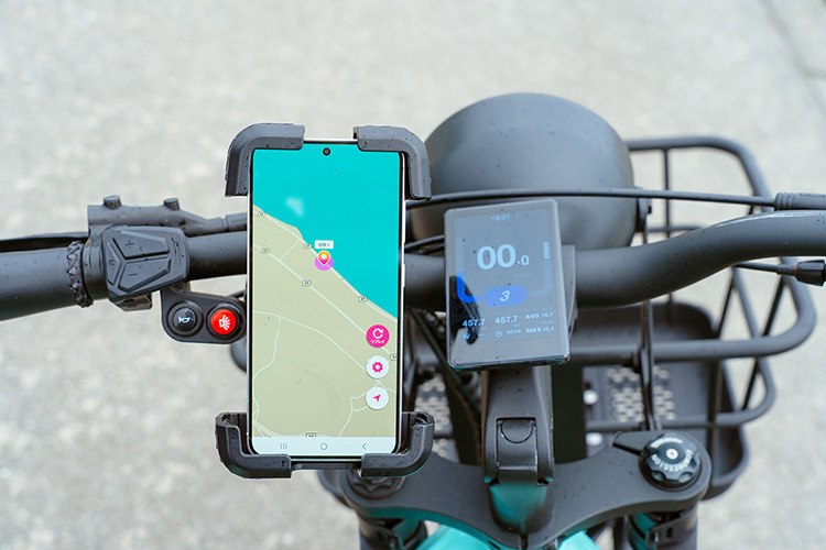 自転車にはスマートフォンが標準装備されており、行き先までのルートを音声付きで案内してくれます。走行中の施錠・解錠は、アプリに表示されるQRコードを読み取るだけ。立ち寄り先で少し自転車を離れる際も、手軽にロックできるので安心です。