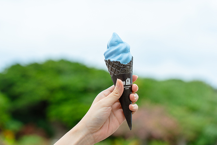 ここでぜひ味わいたいのが、ぬちまーすを使った「うみそらソフトクリーム」。海と空をイメージし、藻類スピルリナで彩られた鮮やかな青色が目を引きます。ほんのり塩味とやさしい甘さが重なり、さっぱりとした後味が、休憩中の糖分補給にぴったりです。