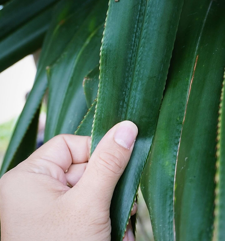「RYUKYU PANAMA HAND WOVEN」では、ボウシクマーの親川さんが自宅の庭で育てているアダンの葉を収穫し、テープ状の素材に加工するところから全て手作業で行っています。素材づくりだけで、約1カ月半、帽子を編んで仕上げるまでにさらに2~3カ月かかるため、量産はできません。