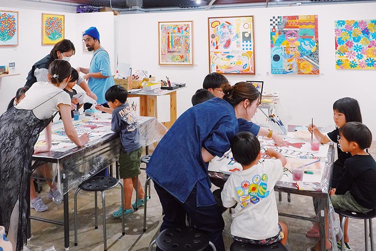 店内には絵画やオブジェ、琉球ガラス、アクセサリー、Tシャツなど、県内外・海外のアーティストの作品が並び、アート鑑賞とショッピングが同時に楽しめます。