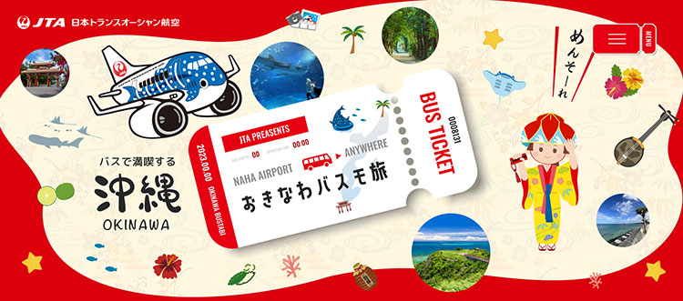 第二弾は、「バス/ゆいレール/船で楽しむ沖縄観光マップ」と連携した「おきなわバスモ旅」、こちらもJTAの公式サイトで公開しています。