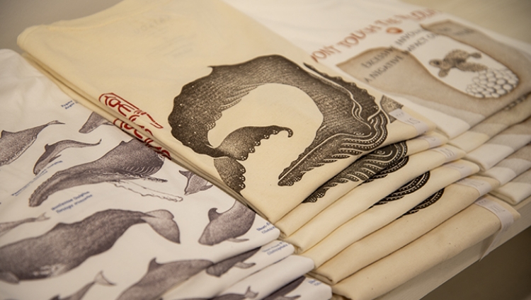 クジラやジュゴンなどの海の生き物が施されたオーガニックコットンTシャツは、その名の通り、100%オーガニック。農薬や化学薬品を一切使用せず、有機農法で栽培された綿を使用し、その後の染色、紡績、縫製まで、全工程において化学薬品を使用していません。