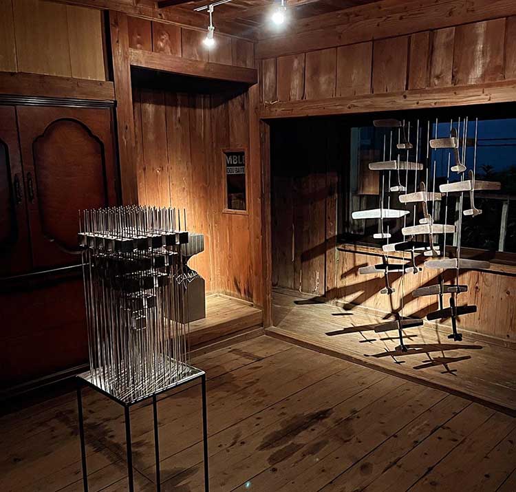プロジェクトの第一歩は、2023年11月にアート展を開催したこと。大木さんたちの思いに共感した南城市出身の現代美術家・津波博美さんが企画。県内で活動するアーティスト8人が参加し、築70年以上の建物の雰囲気を活かした作品展示を行いました。