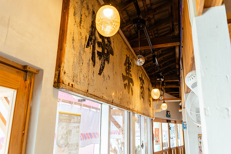 「新しいものと、古いものを融合させたかった」との大木さんたちの思いは、店内のいたるところに現れています。思い出深い旧伊集商店の看板は、カウンター席の真上に。そのほかにも、時計や招き猫など旧伊集商店で使われていたものが店内のあちこちにあります。どれも半世紀以上の歴史を感じさせ、木の温もりが残る店の雰囲気によく合います。