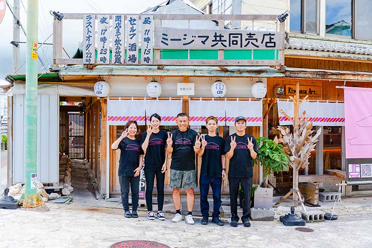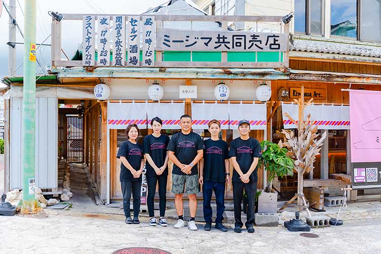 メンバーは、新島区で育った大木さんと友人らが中心。店は約50年以上マチヤグヮー(商店)として町の人たちの暮らしを支え続けてきた「伊集商店」の建物をリノベーション。2023年、地域を盛り上げる「ミージマ共同売店プロジェクト」が始まりました。