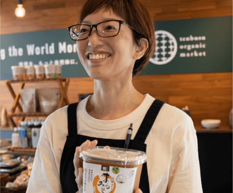 いちおし商品は「まるみそ」。備長炭と電子イオン水、大豆100%でつくったお味噌は、体へのやさしさはもちろん、口あたりがよく、おいしさも格別なのだとか。