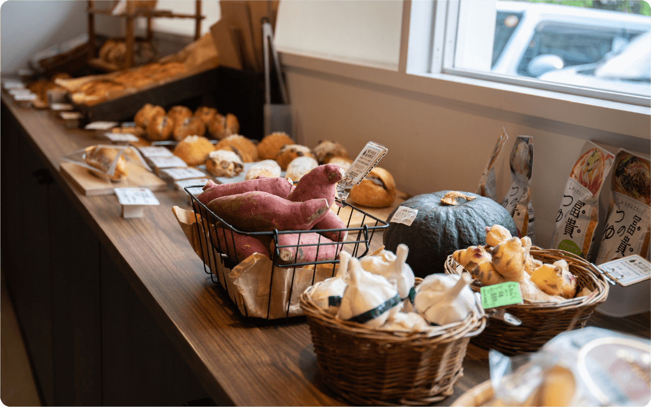また、店内にはベーカリー「パンにまつわるエトセトラ」が併設。有機小麦、県産小麦・島麦かなさん、自家製酵母、自家製バターをつかった安心でおいしいパンをつくっています。