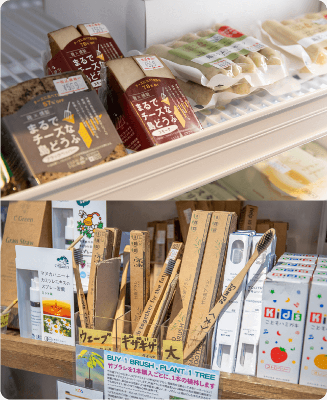 食品だけでなく、1本購入ごとに1本の植林につながる竹ハブラシなど、環境に配慮された日用品も揃っているため、旅の始めに立ち寄ってみてはいかがでしょう。
