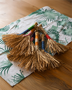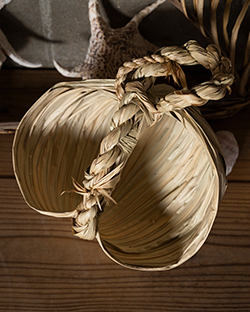 つくられた民具は、植物がもつ素朴な質感を活かしつつ、カラフルな糸や布をアクセントに取り入れるなど、どこか軽やかでモダン。道具としての使いやすさはもちろん、壁や棚に飾れば、インテリアとしても映えます。
