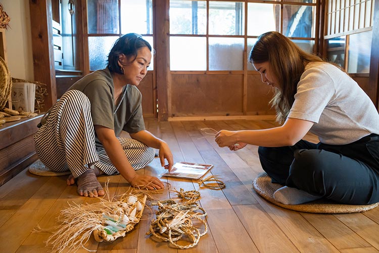 また体験中には、是枝さんが、植物や民具、島の生活のことなど話してくれました。それは“ものを作る時間”であり、島の暮らしを知ることのできる貴重なひとときでした。