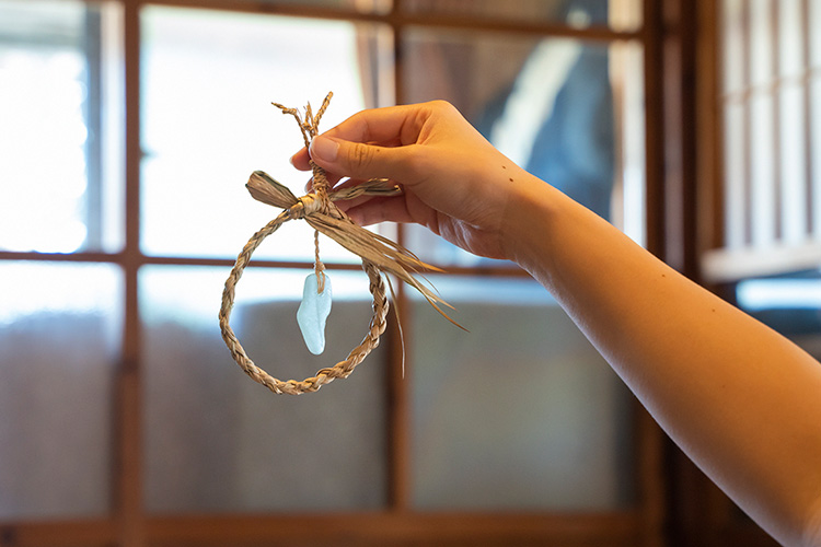 なかでも人気なのが、クバと貝殻やシーグラスを組み合わせたガーランドづくり。クバで編まれた輪に月桃縄で結んだり、貝殻やシーグラスを取り付ければ、世界にひとつだけのオーナメントが完成。30〜45分ほどで気軽に参加できるのも魅力です。
