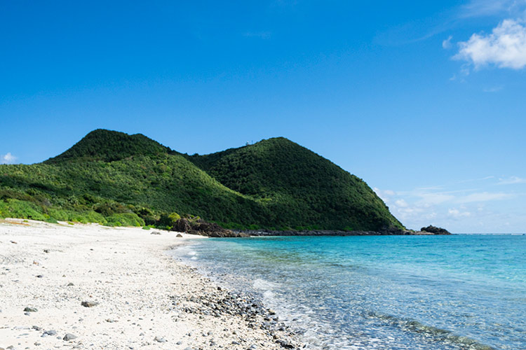 沖縄の最北端に位置する細長い形の伊平屋島は、美しい海と緑豊かな山々が特徴で沖縄ではめずらしい稲作が盛んな島です。