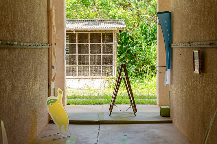箸作り体験が行われるのは廃校を活用した施設「喜如嘉翔学校」。気温が高い日でしたが、緑に囲まれた気持ちの良い風が吹き抜けるテラスで行われました。