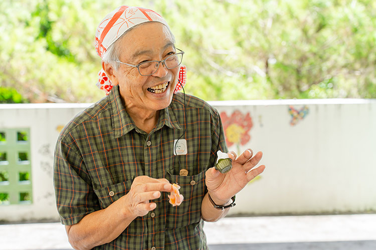 子どものころから行っていた箸作りを奥様の勧めもあり、55歳から本格的に誰でも使いやすいお箸の試作を開始され、2008年に琉球箸が完成しました。G8環境科学大臣会合で沖縄県公式の贈呈品に採用された功績もあります。