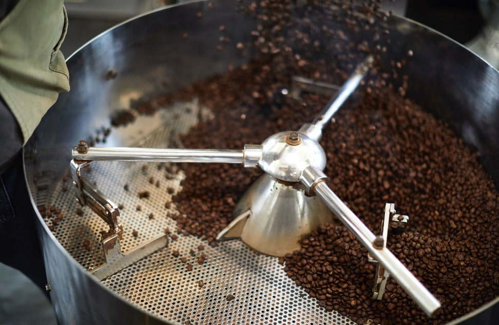 カウンターの奥にある焙煎機で毎日焙煎を行っているのは焙煎担当の末吉業人さん。世界中から厳選して集めたコーヒー豆の個性を失わないように気を付け、気温や湿度によって調整しながら焙煎している。加工の仕方で味が変わるので、そこが難しくもあり、焙煎の面白さだと語ってくれた。