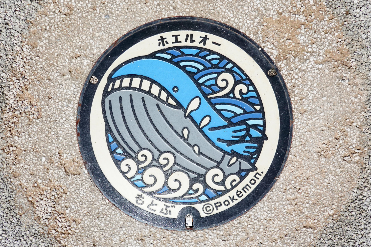 ホエールウォッチングのスポットでもある本部町ではうきくじらポケモンの「ホエルオー」がデザインされています。