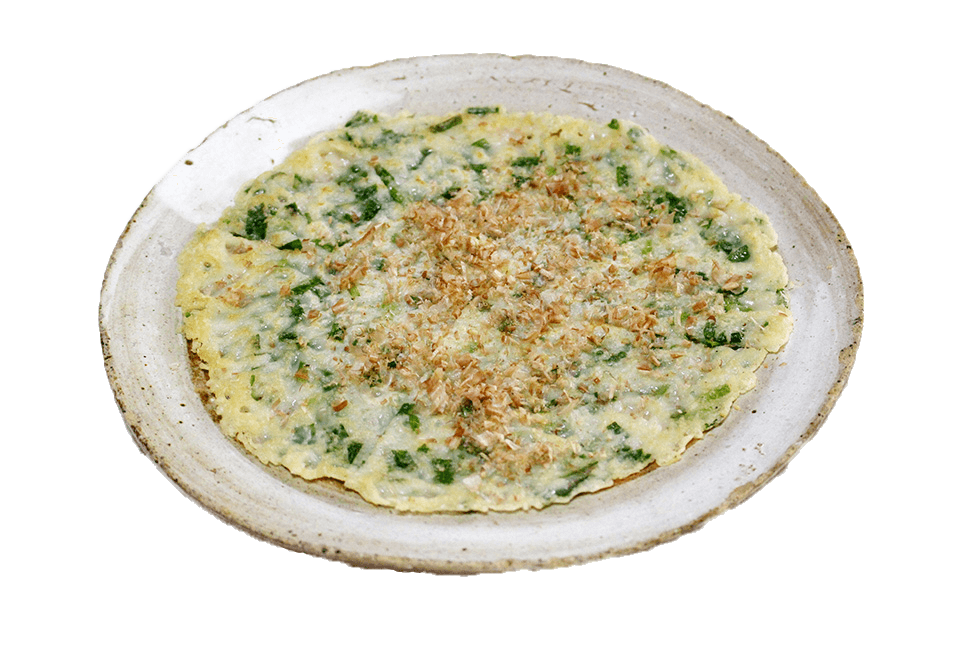 水溶き小麦粉にダシやニラかネギ、缶詰のツナを加えて焼いただけの料理。その手軽さゆえ、昔から台風や停電の際の非常食として県民に親しまれてきました。現在でもおやつや間食、お茶うけとしても食されます。ヒラヤーチーとは、平たい焼き物という意味。韓国料理のチヂミにも似ています。ウスターソースなどを付けて食べられています。