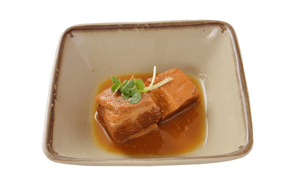 沖縄の代表的な豚肉料理で、いわゆる豚の角煮のこと。豚の皮付き三枚肉を沖縄の地酒・泡盛や醤油で甘辛く煮たもので、中国料理のトンポーローに似ています。皮付きが特徴で、下ごしらえでは表面の毛を直火で焼いて処理することも。居酒屋のメニューでもよく見られます。