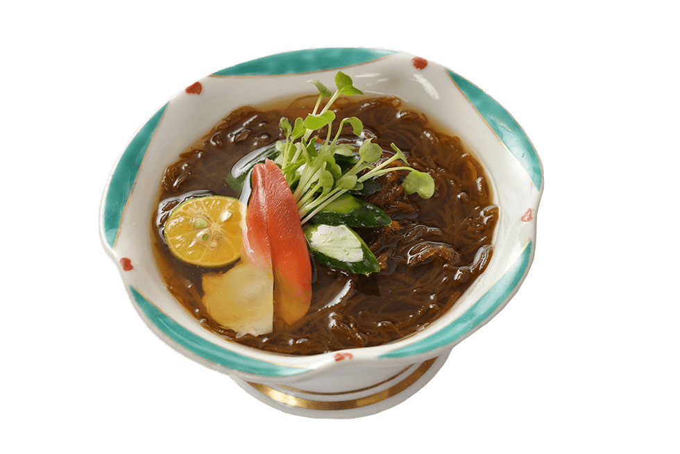 沖縄では加工されたモズク酢だけではなく、塩漬けや生のもずくを天ぷらやスープなどの料理に入れて食べたりします。昔から三杯酢で食されていたため、「スヌイ(酢のり)」とも呼ばれています。1980年頃、沖縄でモズク養殖業が定着し、いまや全国生産量の99%以上を沖縄産が占めています。