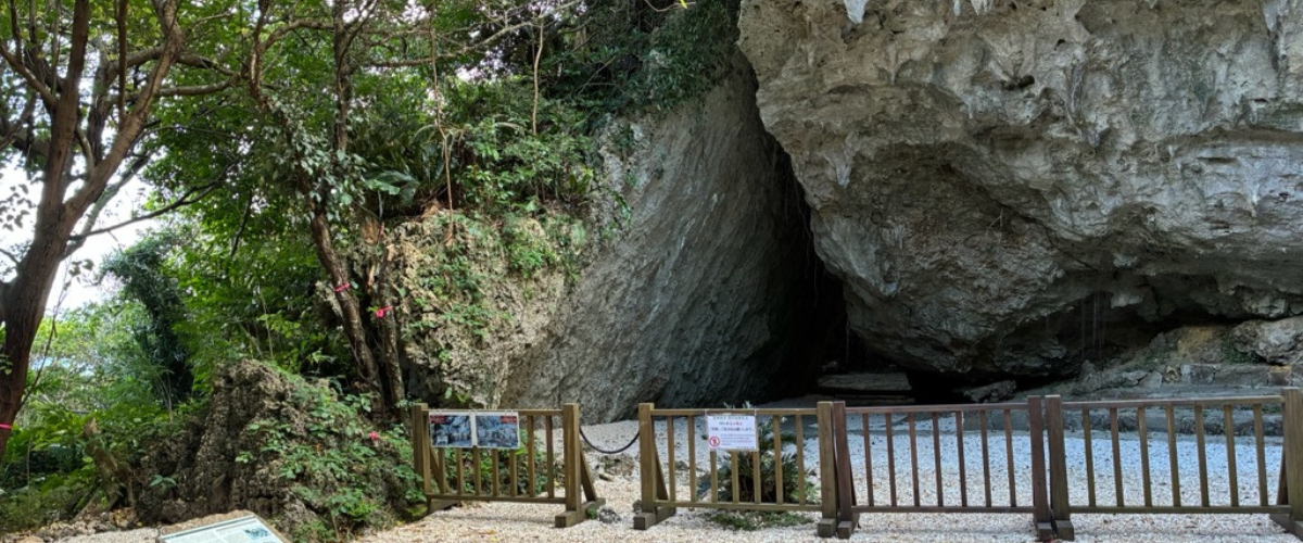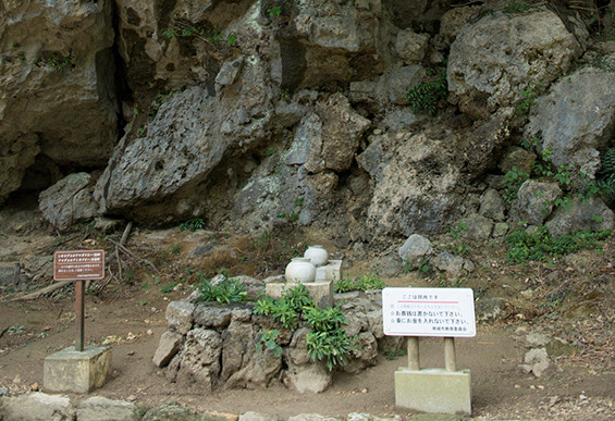その隣には、2本の鍾乳石から滴り落ちる水を受け取るための壺が置かれています。 この水は、神聖な水として聞得大君が最高神職に就任する「御新下り」などに使用されていました。