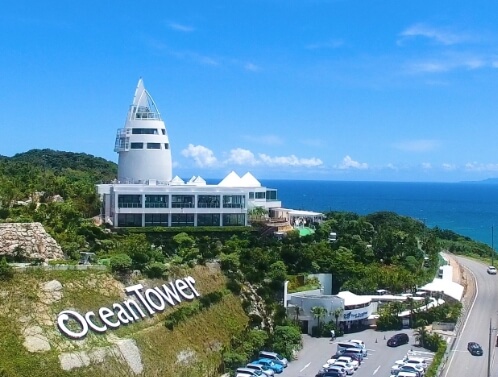 1階には古宇利島の歴史が展示されている資料館、2,3階には屋内展望フロア、そして屋上にはオーシャンデッキがあります。