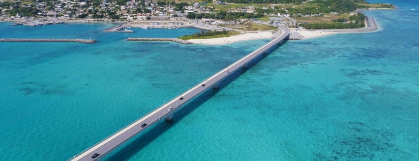 全長1960mの橋から見える青い海は「まさに沖縄!」といった美しさ。本島側からも、多数の絶景ポイントに恵まれています。