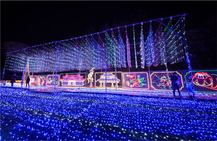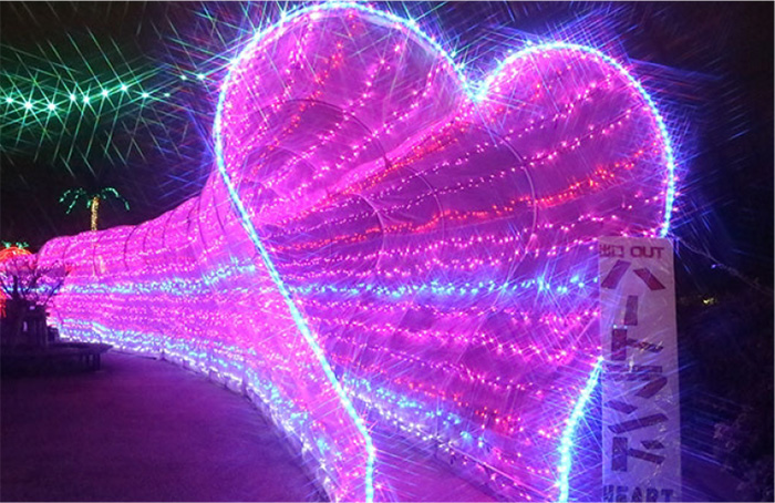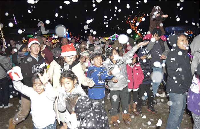 『ナイアガラ』や『ハートランド』など、さまざまなイルミネーションが楽しめるイベント。ステージイベントやエイサーなどが催され、毎年、家族やカップルなど多くの人で賑わいます。中でも一番人気なのは降雪ショーで、沖縄で雪と戯れる不思議な体験ができます。クリスマス仮装で入場すると特典もあるので、会場内ではキュートなコスプレの子どもたちとも出会えます。
